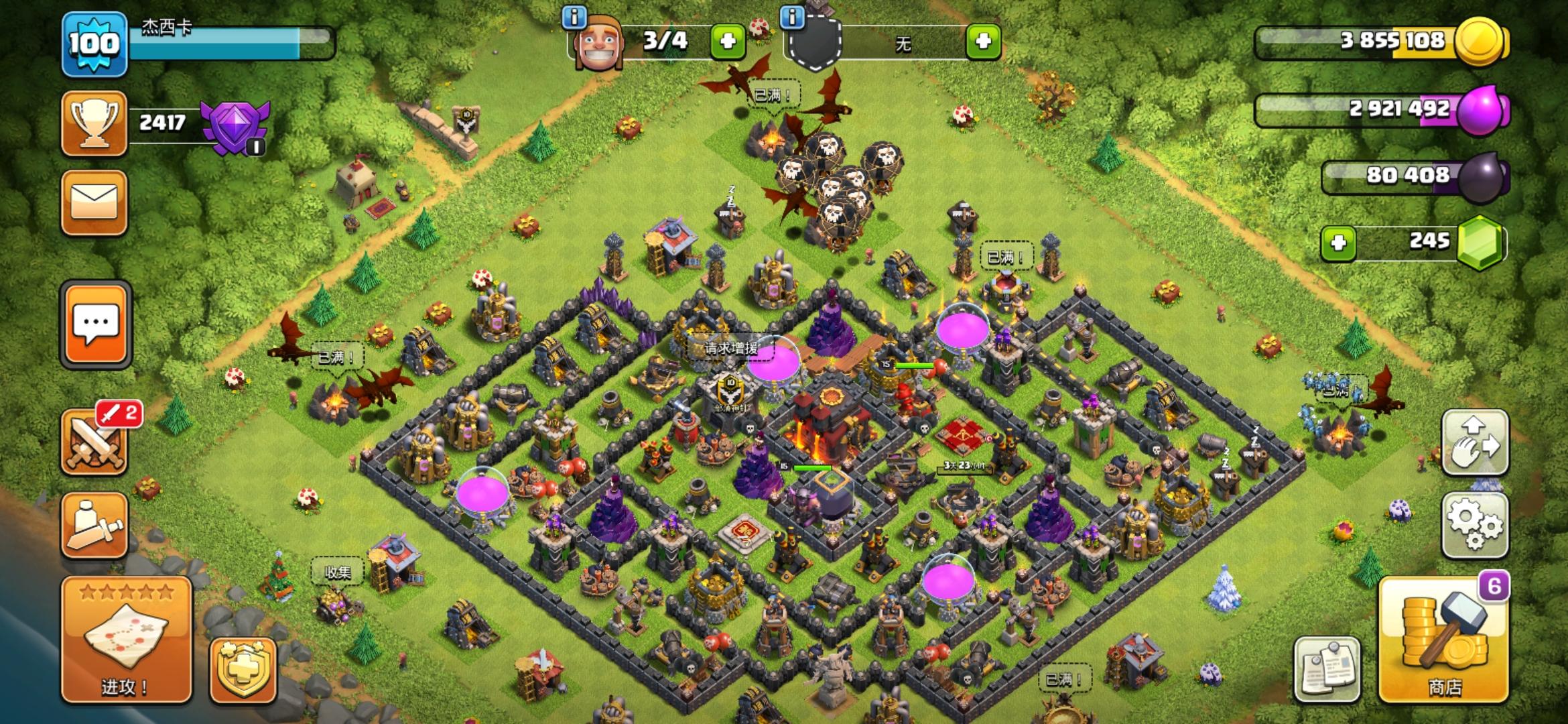 部落冲突是我在六年级的时候玩的,当时因为不会玩,玩了一年才九本,实力还是八本前期的(也是很丢脸了)然后升初一时就不玩了期间还上线过几次。就在这个时候我创建的部落人都退完了。现在我是在今年又回来玩了。