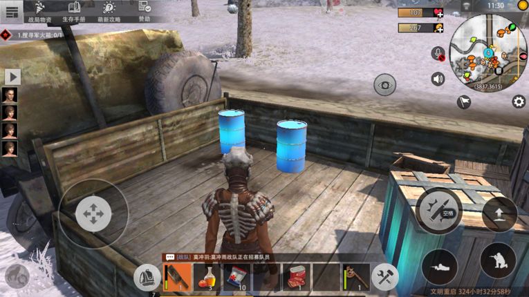 沿着大马路走,路边很多这种蓝色、黄色、红色的油桶,还有不小的几率会遇到“工具箱”、“食物箱”、“补给箱”,尤其是路边的卡车上,箱子出现的概率极大。