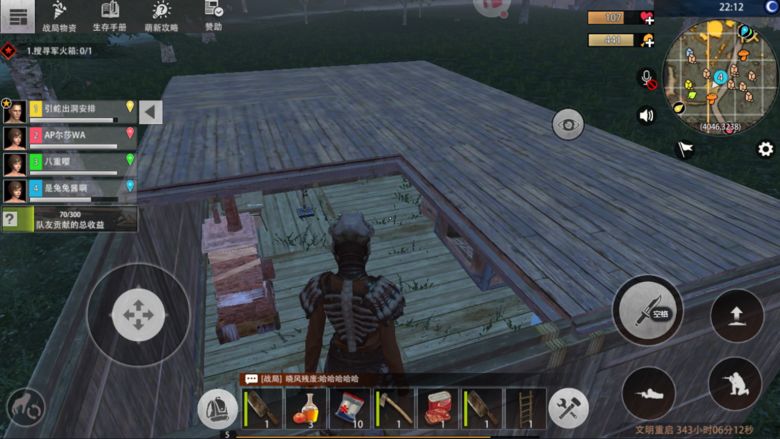 四、【造房子】1、造房子前,需要先砍树,主界面左上角,有引导任务,跟着做就行,也可以在“生存手册”中查看,请按照引导任务的顺序来完成,因为有些任务完成后会送道具给你,例如领地柜、睡袋、工作台、密码锁之类的,就不用自己造。