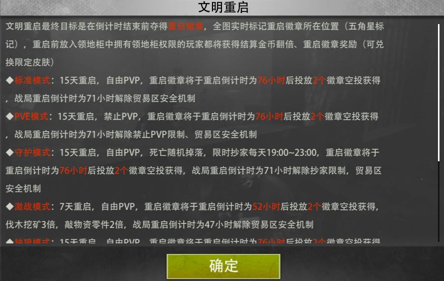 标准、PVE、守护、激战、独狼模式具体有啥区别,在上图左下角可以查看。