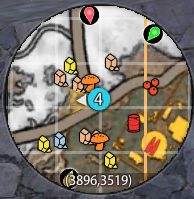 主界面右上角的小地图,橙色石头就是普通的石头,蓝色石头是铁矿石,黄色石头是硫磺矿,还有野果、蘑菇、荨麻草、油桶等等。