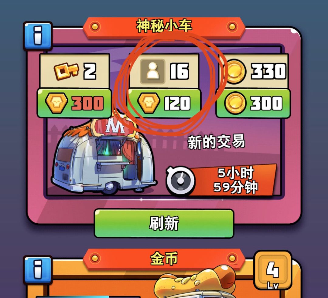 神秘小车是个好地方!除了可以赚取少量的金币外,还可以让你提前获取其他段位的角色。