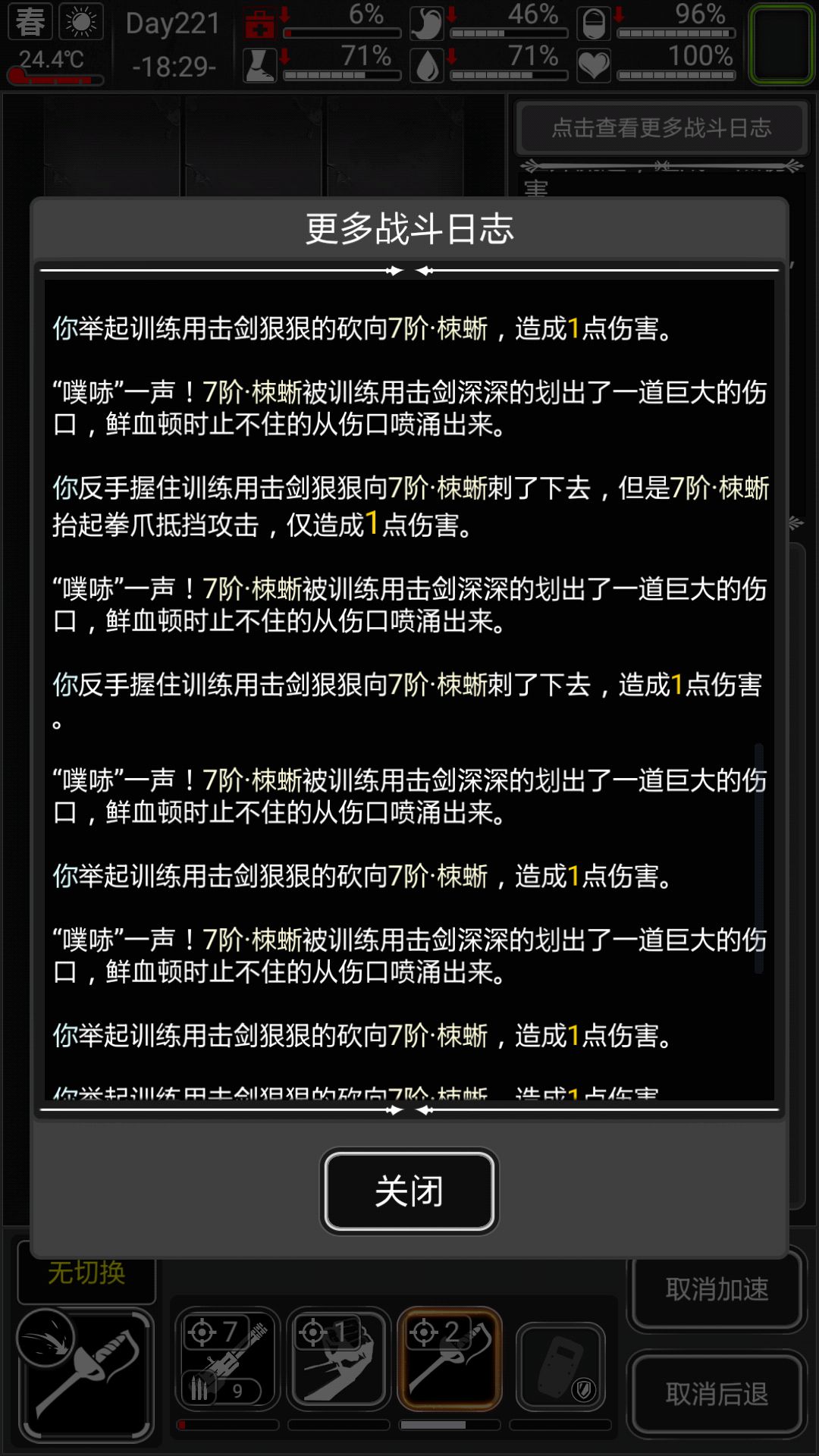 操作方式:首先 加特林开【后退】蓄力(期间最好把怪束缚在前两格) 然后【取消后退】后蓄力槽仍会自动蓄满直到开出一枪(此时就开启了大部分人都会的加特林瞬间十几发) 切换武器军刺【自动上前】 角色此时会自动走入攻击范围 然后 瞬间连刺↣直至行动值消耗完。理论上攻击消耗行动值越低的武器瞬间打出的攻击次数越多以下为击剑的攻击频率(不过打的是慈溪伤害为1)具体用处正在实验,大家可以一起试试,挺好玩的