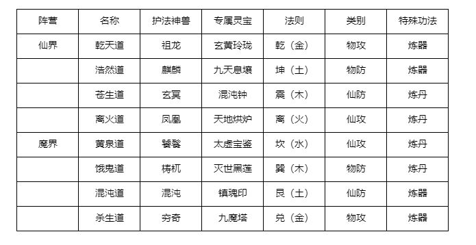 道主:掌管一道,可在此退出当前道,好友度满了之后可获得专属灵宝,可挑战他成为该道道主