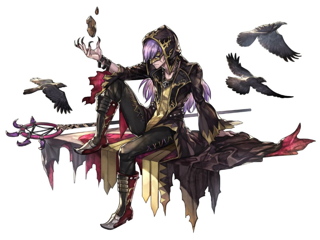 追求黑暗与死亡力量的魔法师雷文,是各位冒险者们第一次「相遇」中所能选择的同伴中位列首位的角色。黑色法袍紫色长发,以及为遮挡住受伤脸部而蒙上的面具,使这位以「死亡之鸟」命名的魔法师更添一丝禁忌的神秘。