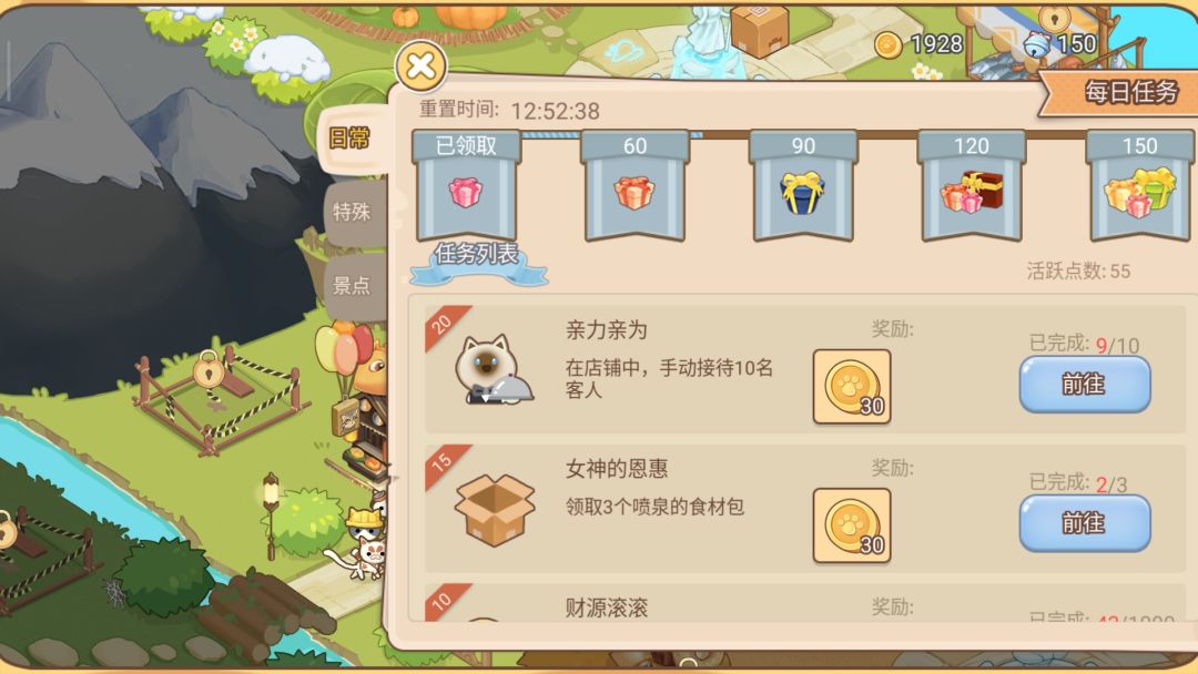 这游戏的快节奏感觉很好,比如普通猫咪点菜二十几秒能完成一个,特别订单也能五分钟之内完成(如果有材料)。