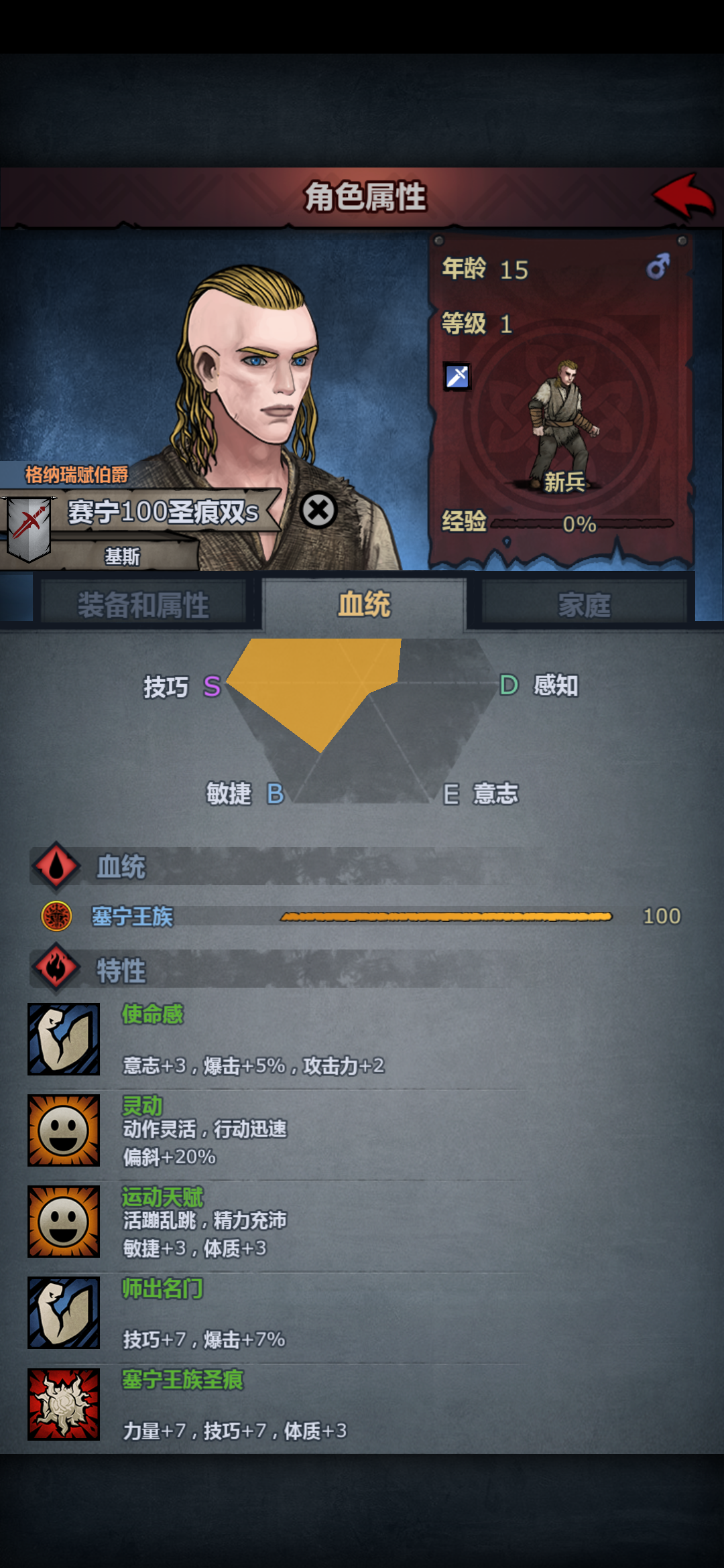 这是我的第一个赛宁纯血,除了头发金黄,其他都不符合赛宁王血面相,没辫子,没面纹,胳膊上也没圣痕
