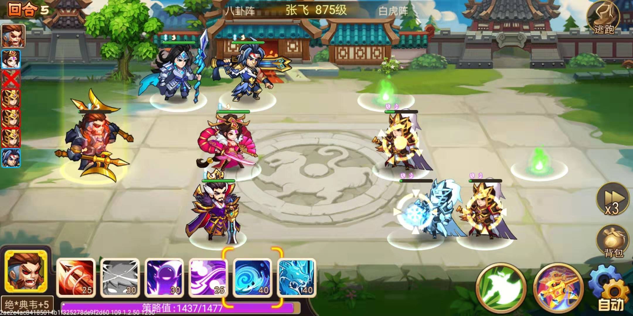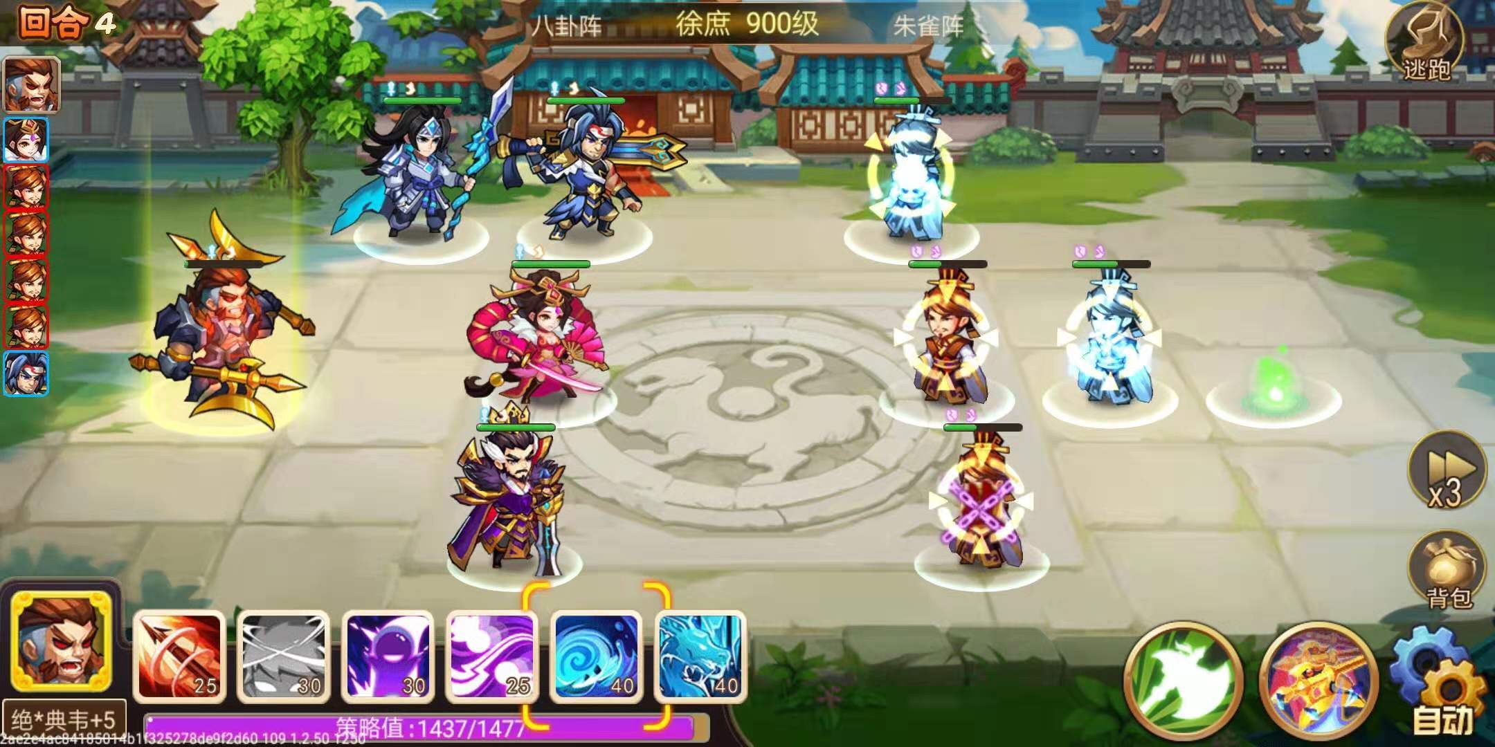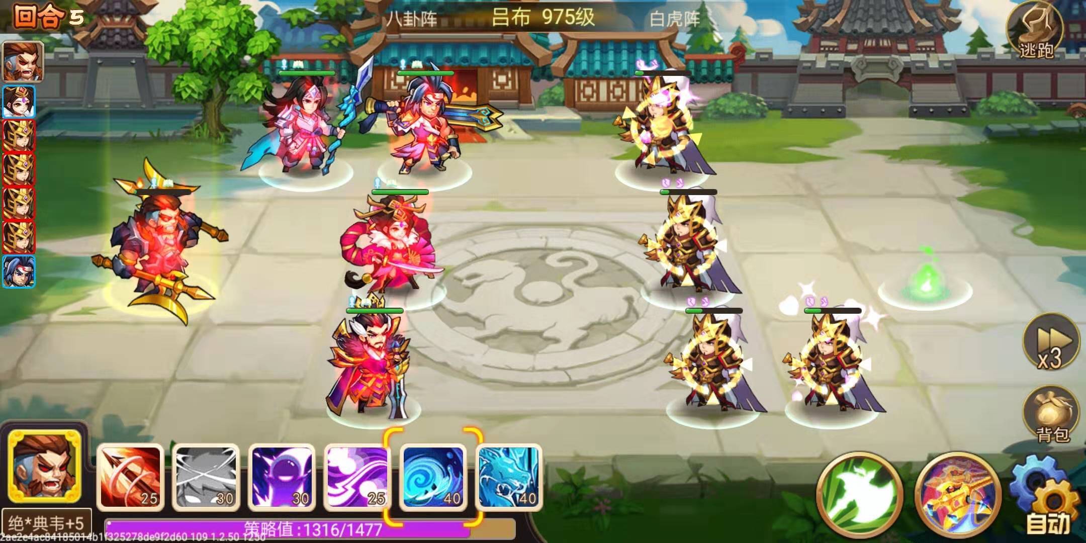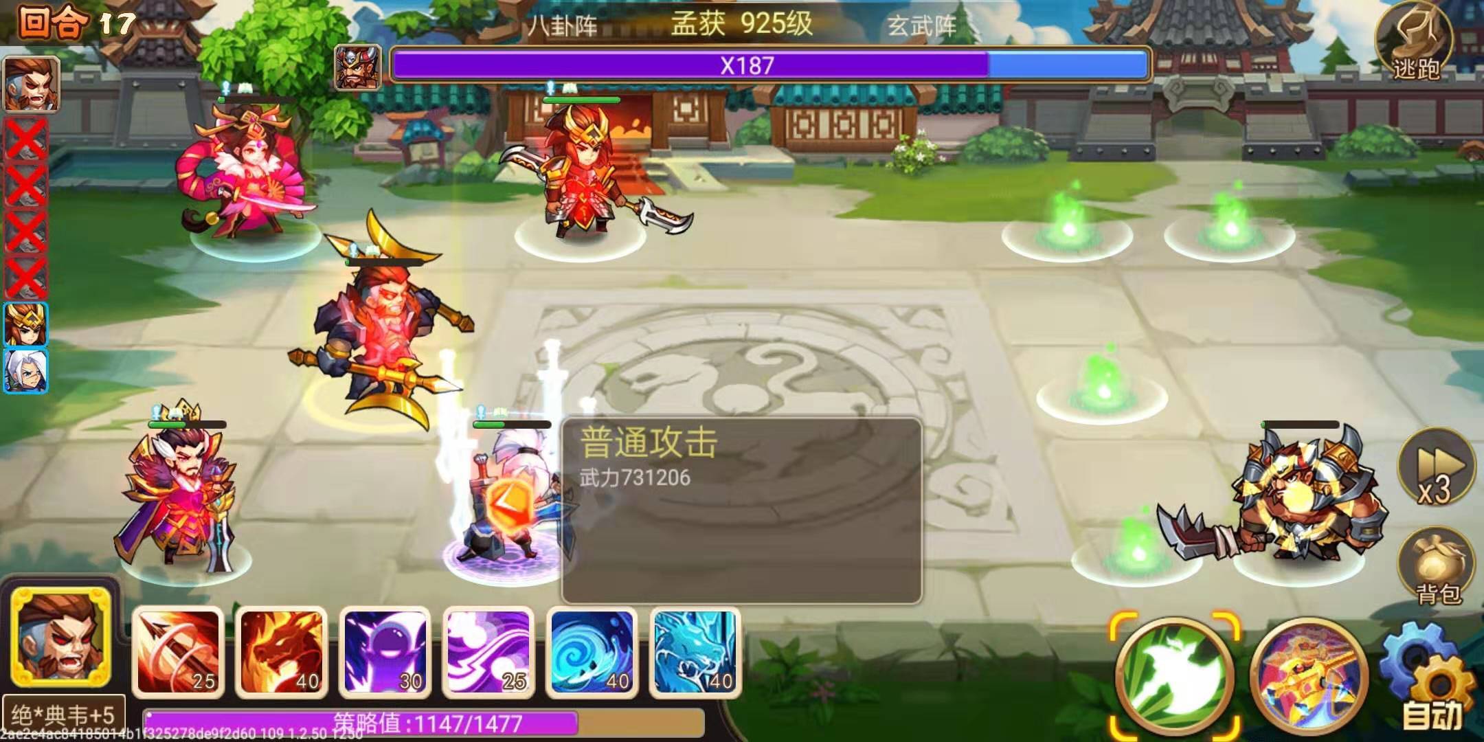 因为有双反将,不需要特意去清小怪,也不能这么做。我会在开反伤技能之后,放一只出来玩,不放也不行,因为它们是玄武阵。我的典韦速度差一点点,所以带了曹操的专属,也还不错啦,有加命中。