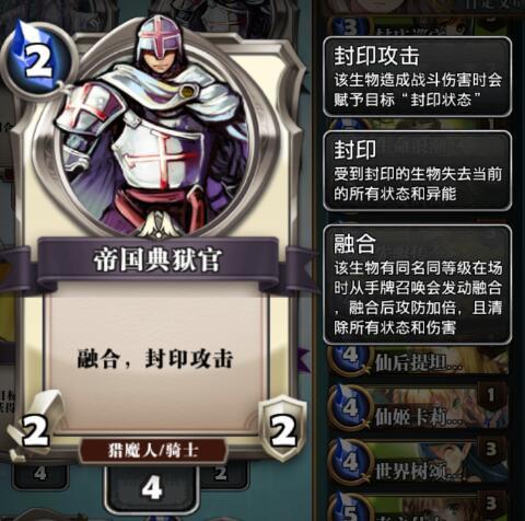 退魔剑士完全不要换成帝国典狱官,虽然剑士高了两点血能够提供更持久的续航但是死了就没了。通过把圣物换成残阳碎片就可以让他反复上阵,这套卡组的2血生物只有帝国典狱官和仙宫勇士横竖是这两个不是1就是2哪个都有极好的牵制作用。