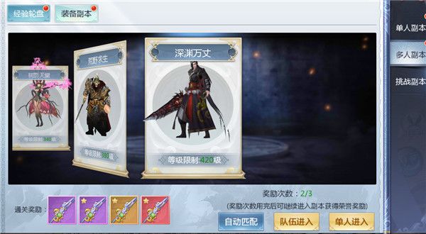 装备副本入口:【主界面右上角】-【副本】-【多人副本】-【装备副本】。