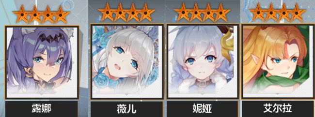 【紫卡】:露娜(潜),薇儿(冰),尼亚(剑),艾尔拉(弓)