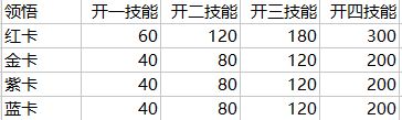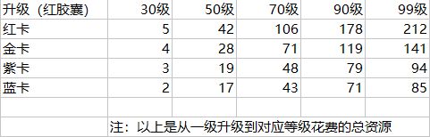 这里个人统计了各颜色卡牌培养所需要的资源以供大家参考。