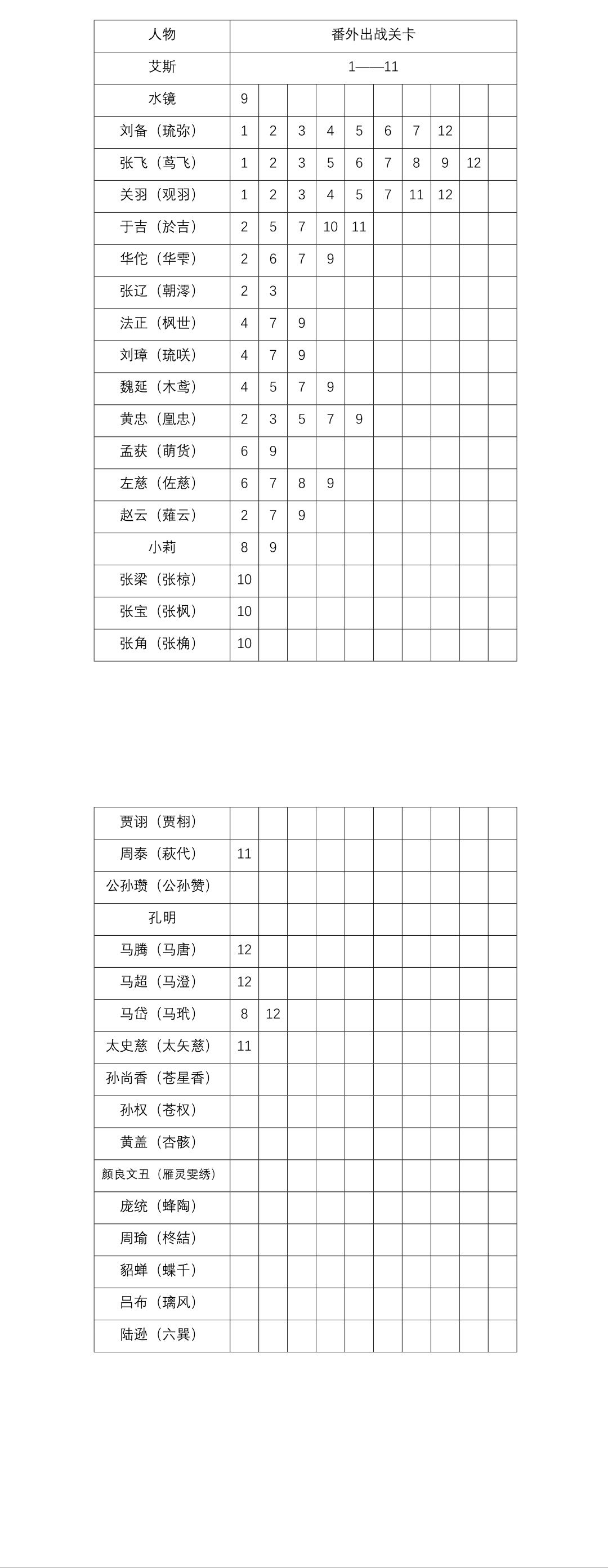 人物——番外关卡: