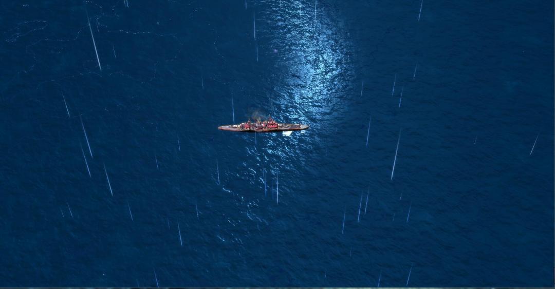 仿若雨中月夜,波光粼粼,如流星般落雨,唯舰船摇曳其中…