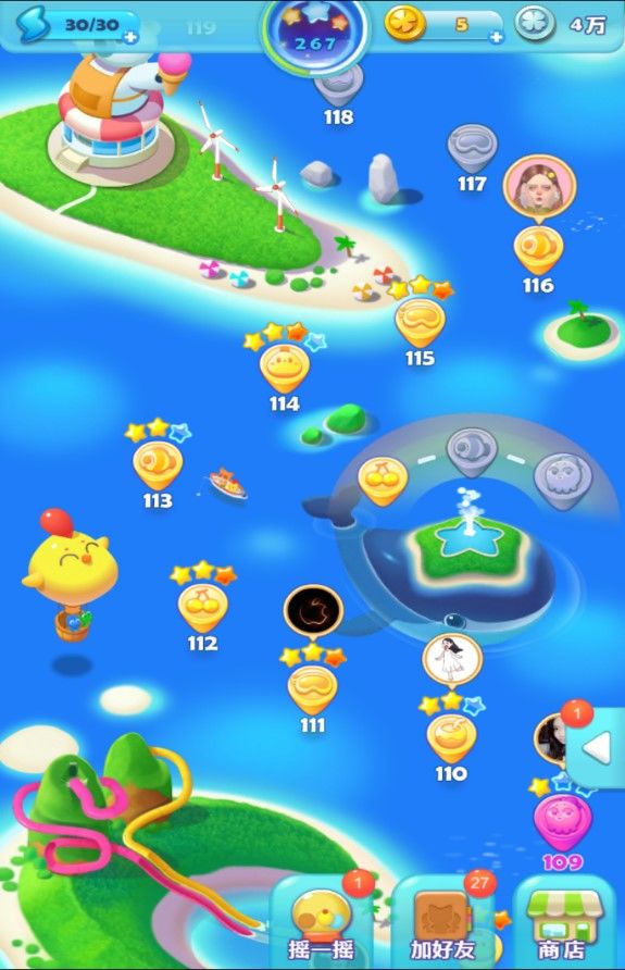 游戏玩法和目标也非常清晰明确:通过经典的三消换位玩法,达到过关目标,从而不断闯关。操作简单,手残党的友好之作~~~闯关过程中可以使用例如“冲浪板、魔力鸟”等特效、道具。弱联网的模式,在地铁里、电梯里等信号微弱的地方也可以愉快的闯关啦。