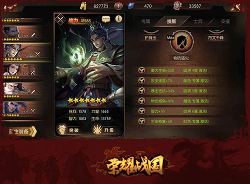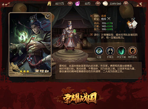 作为辅助武将蔺相如并不需要太多输出能力,所以他的专属加成也都以增加防御力为主,在没有太多装备支持的情况下也有不错的生存能力。当然对于有余力的玩家来说,增强蔺相如的计策攻击也可以显著提升他的治疗和输出能力,对于帮助的提升也是非常巨大的。
