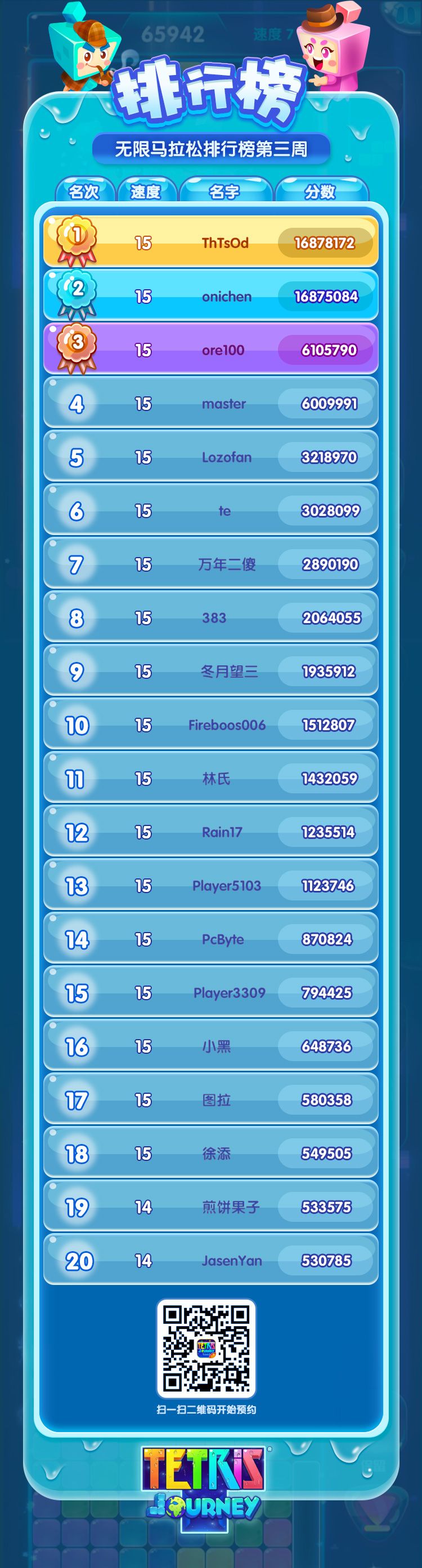 大家一定发现了,这次的榜单整体分值要比前两次的都高了不止一个档次。俄罗斯方块就是这样,看似简单却技巧性十足,而当你有了足够的耐心和足够的练习,你的努力将得到回报,你的实力将证明一切。本次《俄罗斯方块环游记》无限马拉松排行榜报道就到此为止啦,我们下次测试再见哦。