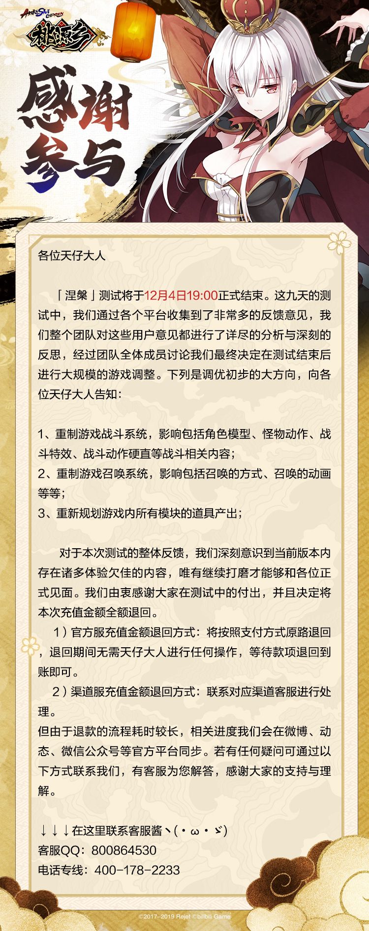 【涅槃测试】12月4日充值退款公告