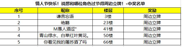 【获奖名单公布!】情人节快乐!说想和哪位角色过节得周边立牌!