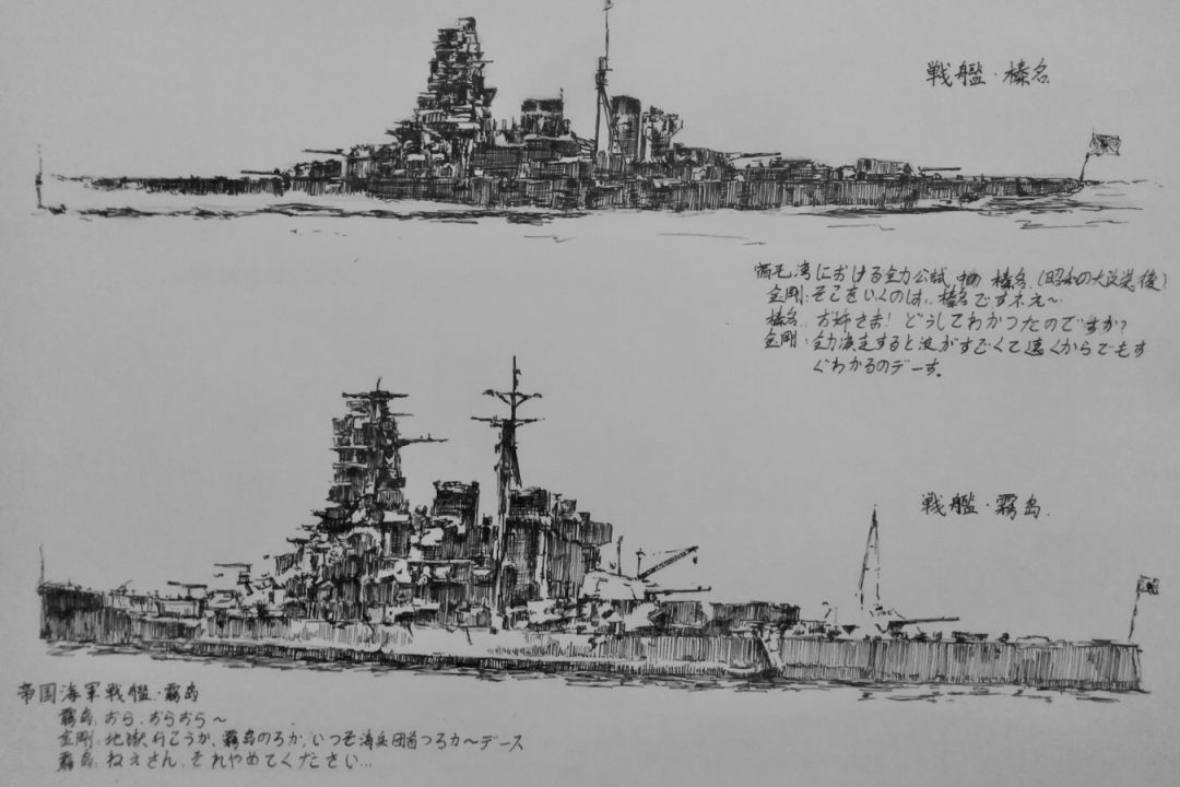 戦艦榛名,戦艦霧岛,山本大将,最后一张能看出来是哪艘吗?(看不出来我的锅)