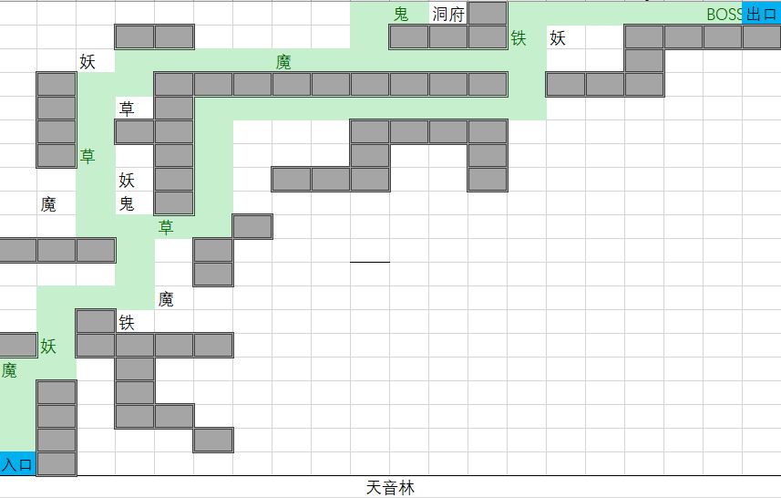 注释:天音林偏下的那条路上的怪我没标注,因为做的太早了,是打死完回头画的;而偏上的那条路,不是我走的路...只是顺手加上。
