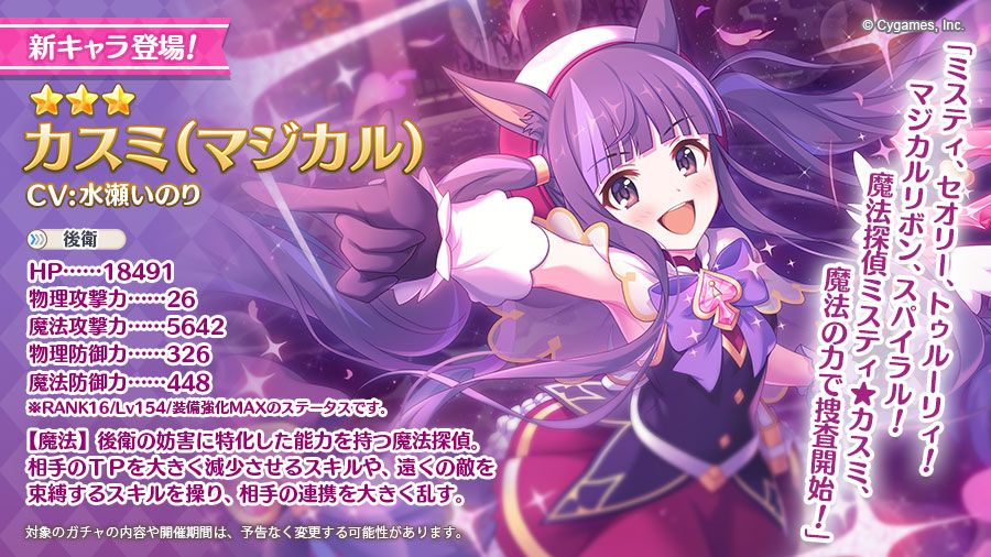 春妈池后是魔法少女霞池,魔法侦探拥有减敌方TP最高角色的TP、控制敌方后排,UB降低敌全体TP的能力,是jjc中非常强力的角色。虽然魔法侦探是常驻角色,但是有条件的话就抽抽吧,毕竟常驻等歪真的只是个念想而已....