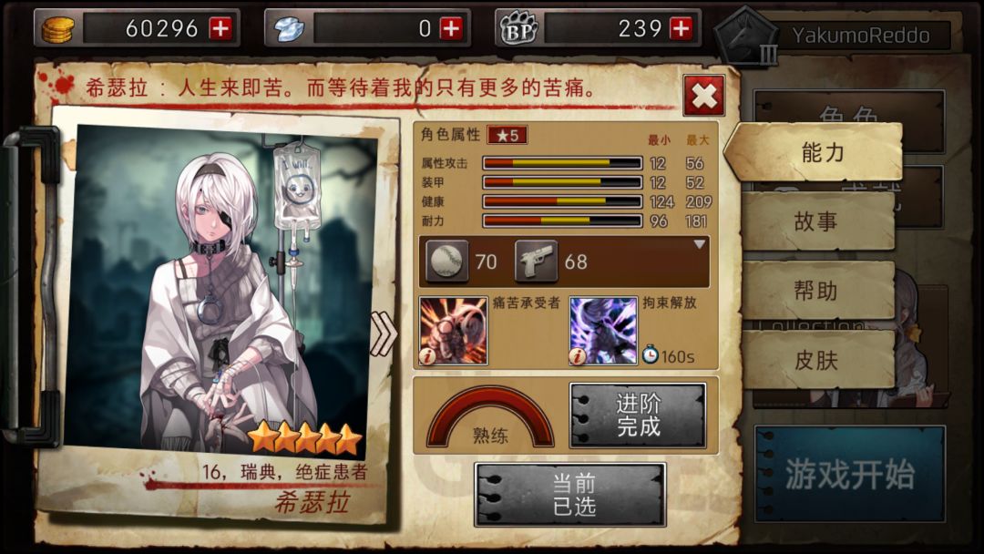 病女是比较弱的,一技能中期是一个一般的防御技能,二技能用处很少,主要是叠buff要被打,顺风的话不会想用,逆风不敢用,被打几下就gg和,还想叠buff?所以病女这个角色比较难吃鸡,玩的好一般都是第二名左右居多,特别是排位,中期那些打不过你的看到就跑,拖到后期你就打不过了。