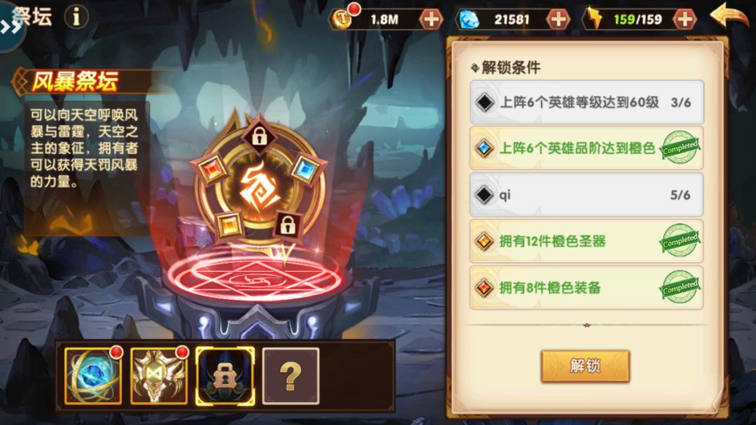 只需满足一定条件祭坛即可解锁,每完成一个条件记录一条,直至全部达成方可解锁新祭坛