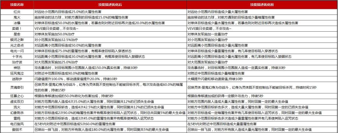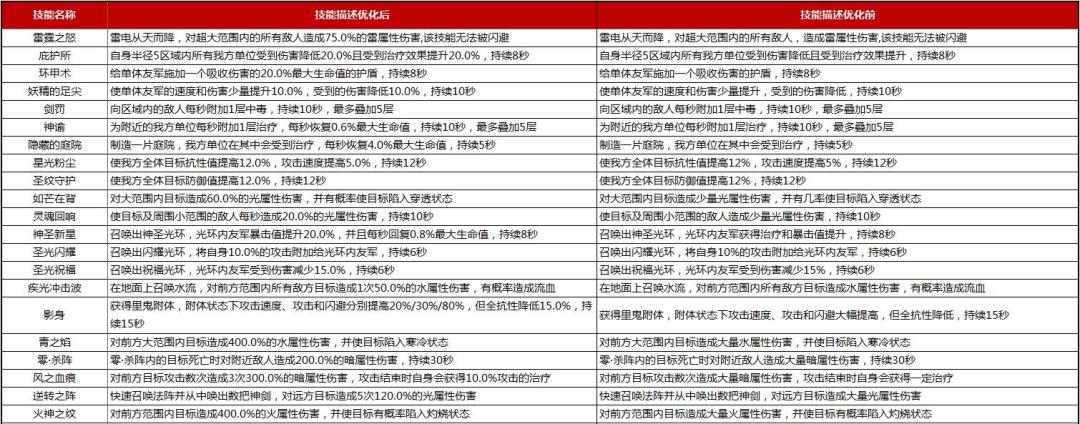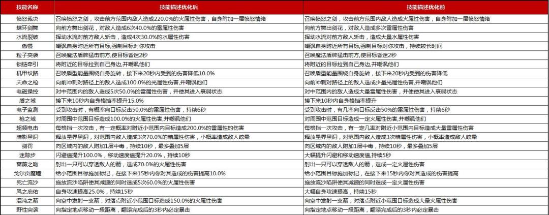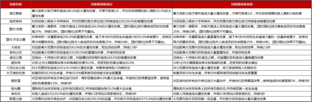 1. 技能描述优化:角色普攻、主动技能和必杀大招的描述文案增加具体的伤害系数,详细修改说明如下: