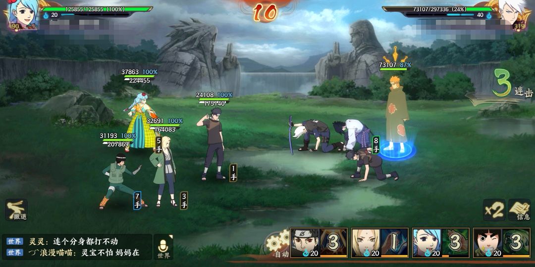 尤其是[精英]仙人自来也,1手四代打不断,2手初代控不住,3手风主分身两万血,4手仙自攻击高还要打三下。