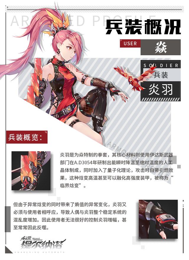 那么说回正题!今天要为特尉大人们介绍焱的兵装信息,详细的介绍还请特尉大人看图啦~