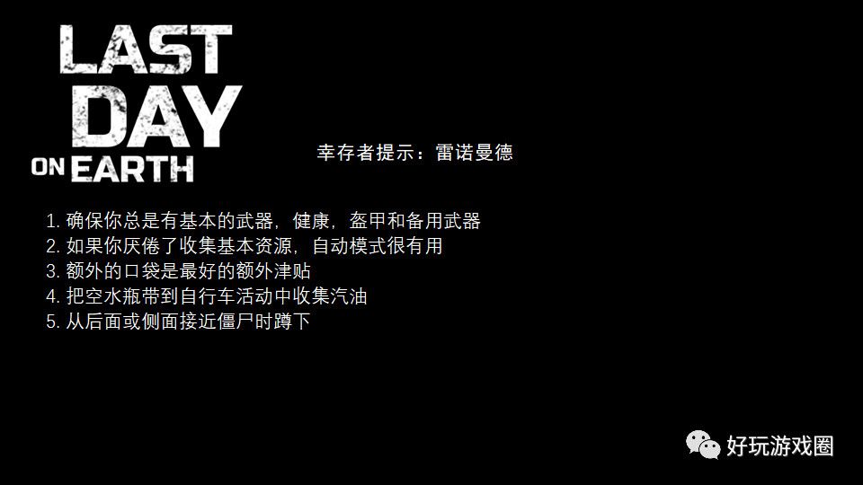 幸存者:马克 · 欧文1. 刚开始的时候尽量收集所有你能收集的东西。你最终会需要它的