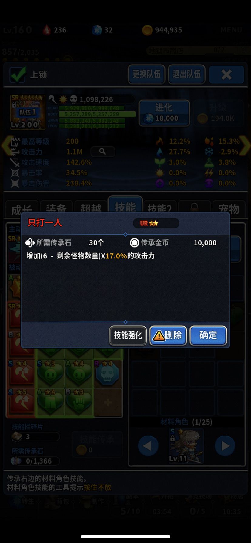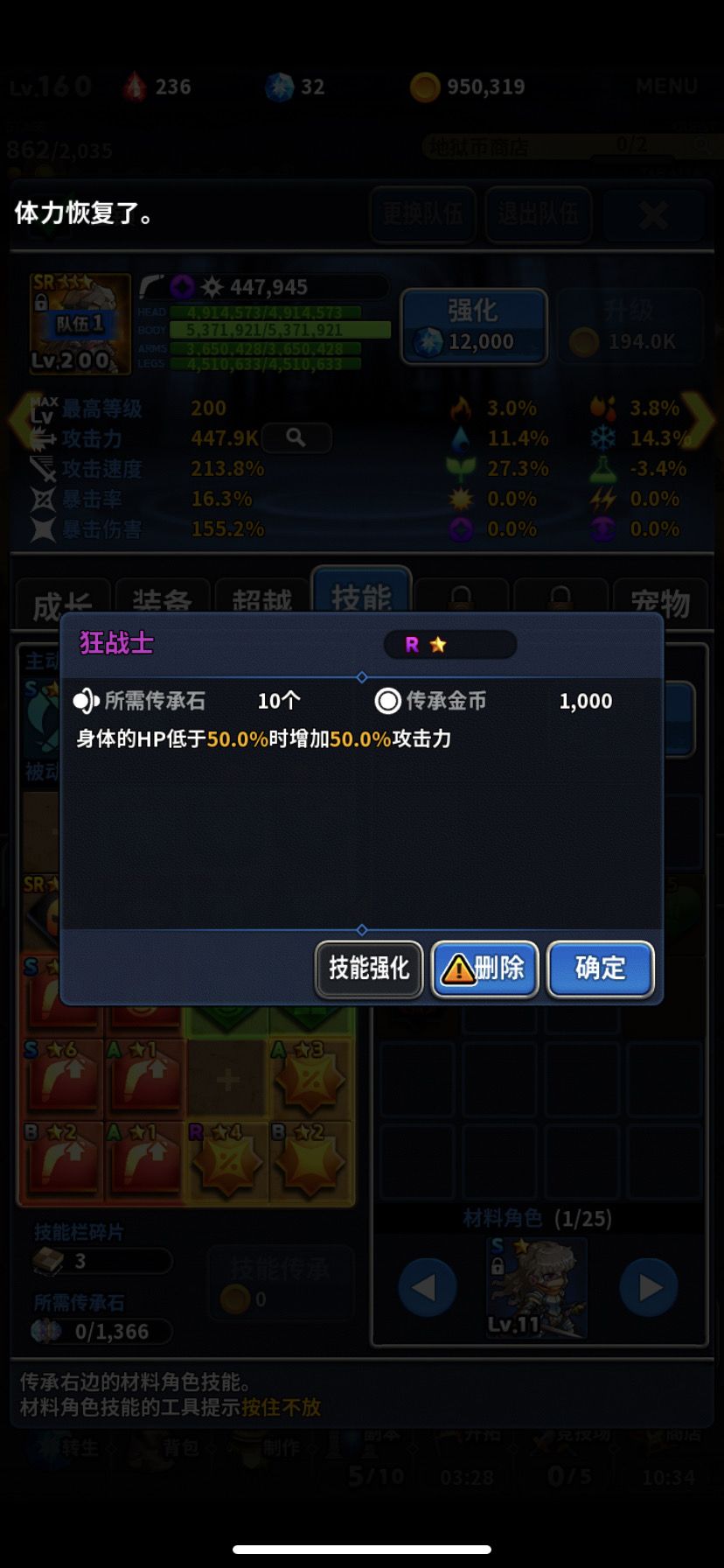 自己要提前想好技能怎么排,然后技能可以强化,这个超级费转生石,所以比较推荐用地狱币买合适的技能来布局,因为买的和红宝石抽出来的技能可以自己随便放,特殊技能就得看脸了,然后注意的是第二技能栏第三技能栏的技能似乎放进去以后就不能传承给其他角色了,这个需要注意