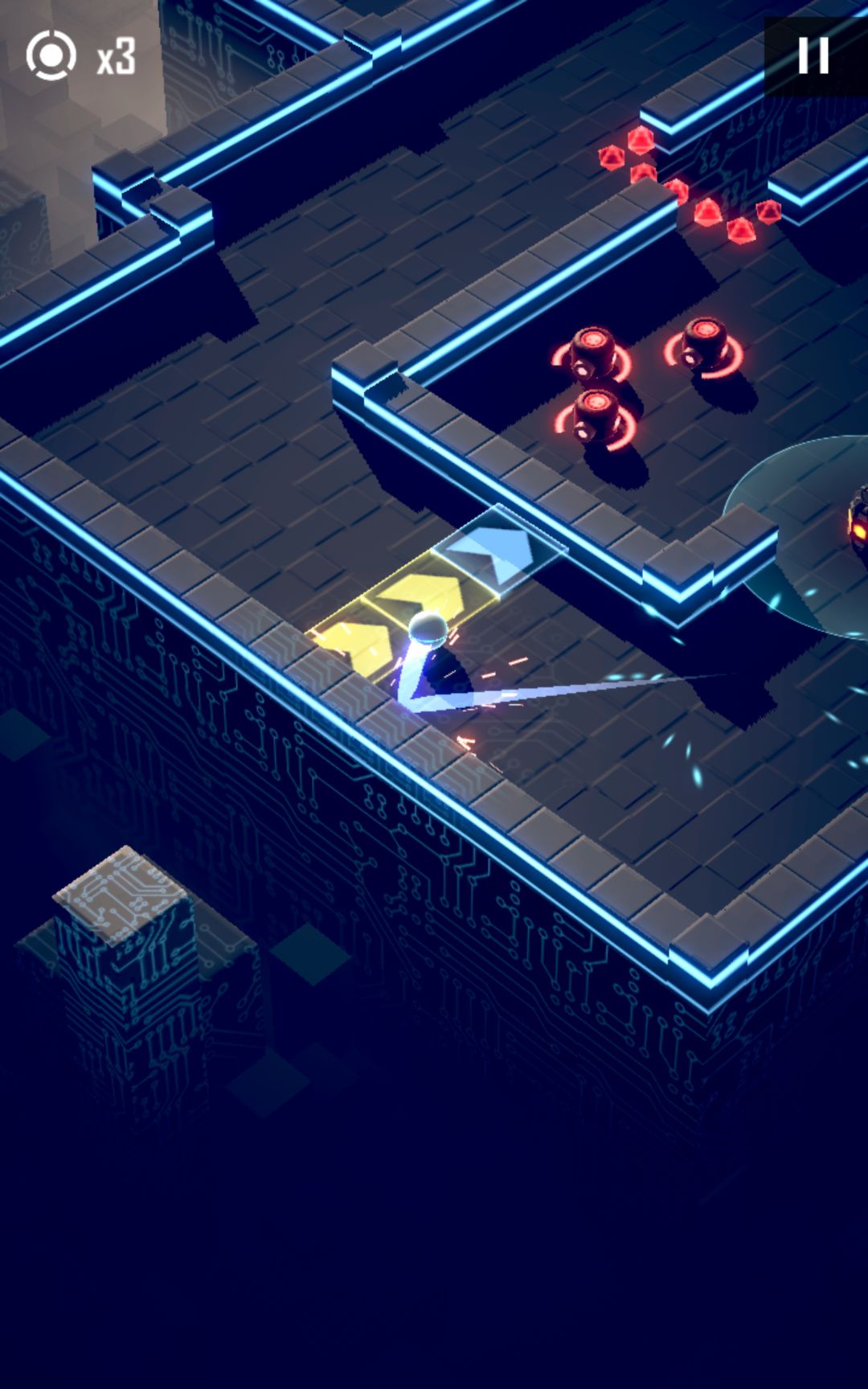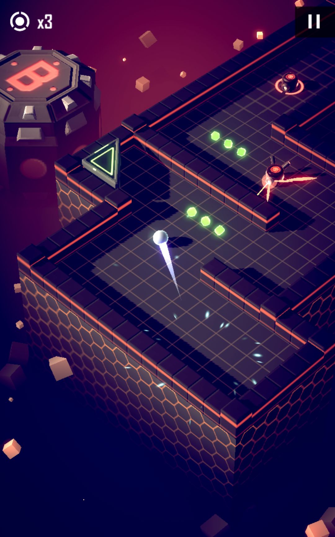 如图,中间看起来就是豆腐渣工程的东西是可破坏的墙壁,在核心碰撞一次后破碎,非加速状态会造成反弹,加速状态将直接穿越。墙后的是第一种会攻击的怪物,在周围读条圈满之后,瞄准当前球所在的位置发射一枚子弹,此为单发版本。后面还会有3连发,3发散弹,无读条加特林,多向炮台等诸多版本。读条速度也各有差异,请注意观察再行动。