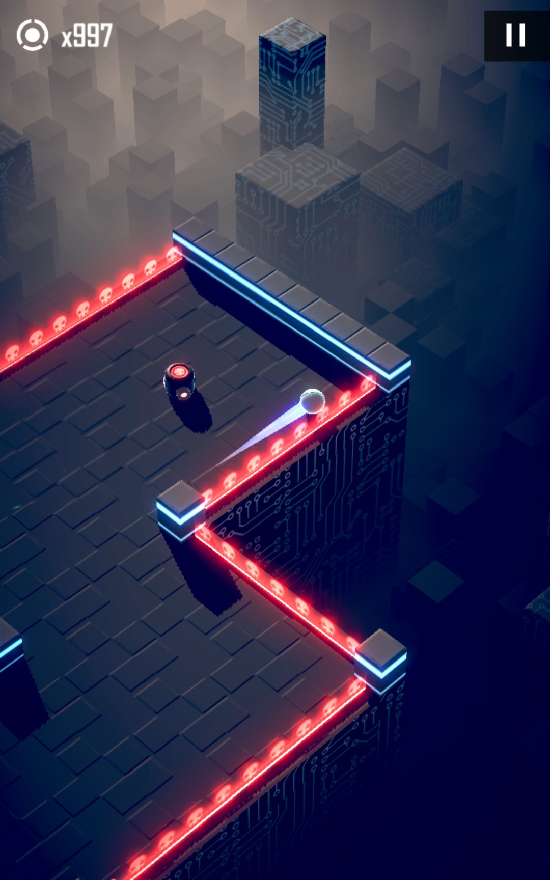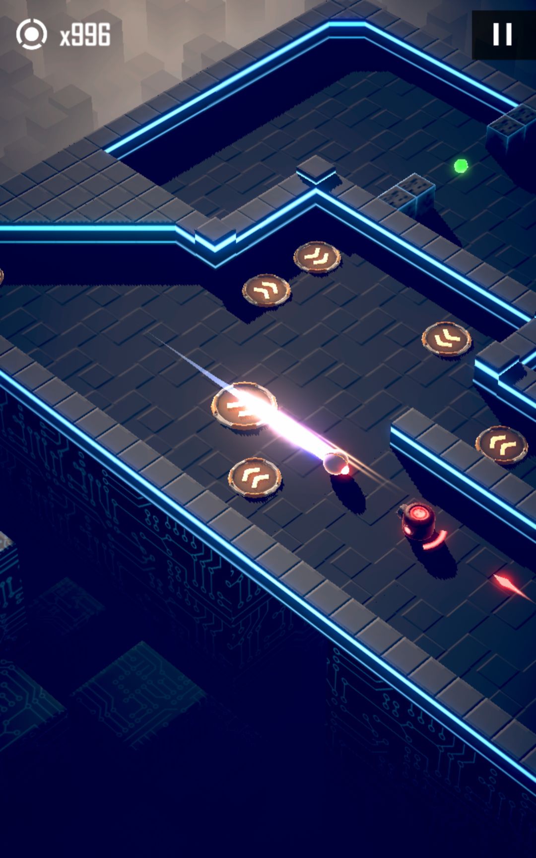这是踩到加速点之后的加速状态,此时小球不可阻挡,直到关卡结束或者小球中途被吸到磁铁上为止。