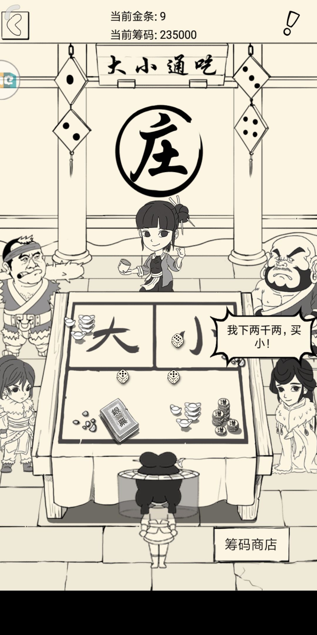 进赌坊点桌子,出现界面。