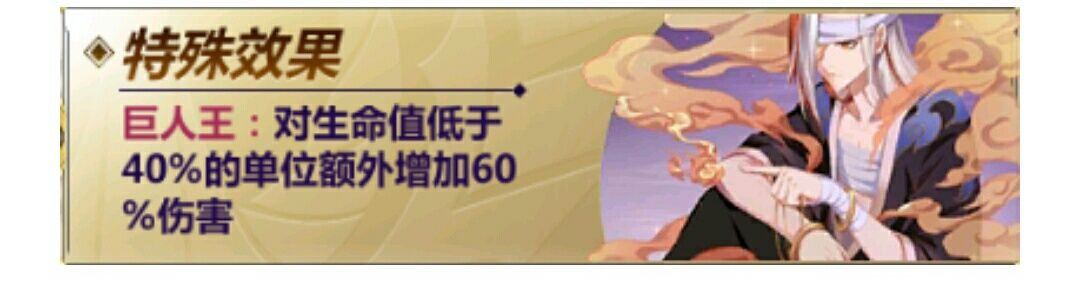 特殊:巨人王(对生命值低于40%的单位额外增加60%伤害)