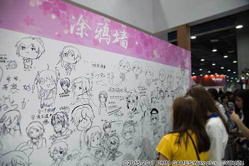 大量深爱着《刀剑乱舞-ONLINE-》的粉丝,自发在应援墙贴上了写满祝福的樱花便签,还有粉丝们热情高涨地在涂鸦墙上大显身手。