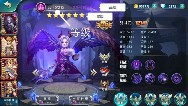 我们可以这样理解,想要大致了解一位英雄的实力强弱,可以通过3个方面:英雄等级、英雄品质、英雄星级。
