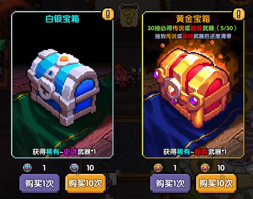 关于超越武器抽奖,黄金宝箱的奖池包涵了所有除本期活动武器外的所有魔女武器,即如果当前有XX魔女活动宝箱时,黄金宝箱可以抽到所有除了该魔女武器外的所有其他魔女武器,且为当前职业。