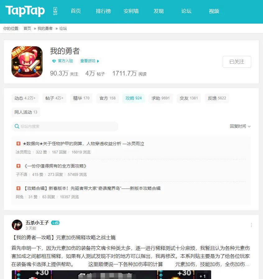 当你开启魔界岛之后,那么恭喜你,你已经初步摆脱了一无所知的萌新阶段,开始步入了高速增强的时光。在这期间,建议可以上TAPTAP的我的勇者论坛多与高层大佬交流,多多查阅他们对于不同职业的心得攻略,并在其中选择自己所喜欢的流派进行“抄作业”。(TAPTAP的老哥个个都是人才,说话超好听,写攻略的老哥你在底下尽管向他提问基本上都会耐心回复你的,看了前人的经验可以让你提高的更加迅速不是吗?)