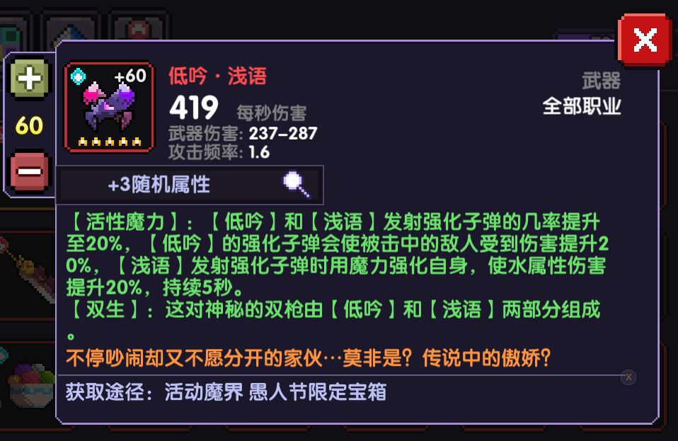 在上方的武器伤害为主手属性,副属性为装备时即可享受的属性