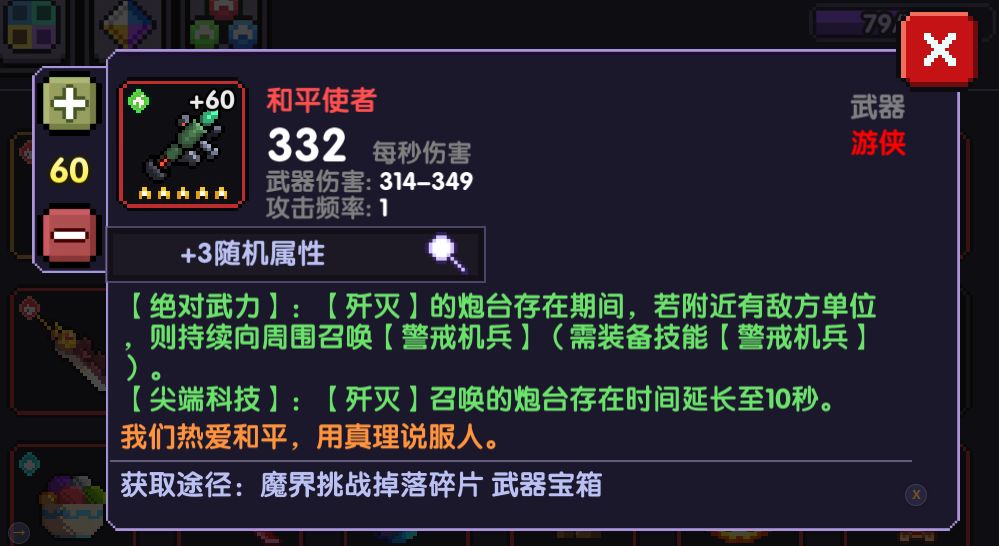 如此类武器则为必须主手才能生效。 关于武器的副属性洗练,其中护甲,生命,回复等属性一定要替换掉,这类防御类属性的加成极低,就拿60级满级号来说,普遍生命都有1w5以上,护甲也能有3000+,战士游侠等职业会更高,而武器上所增加的护甲、生命、回复均过低,所以极其不建议保留此类副属性,对于攻击强度这条属性,萌新前期如果洗出了橙色的可以适当保留拿来过度,在有自己的第一把5星或者50级以上时,攻击强度词条任何武器均不建议保留。