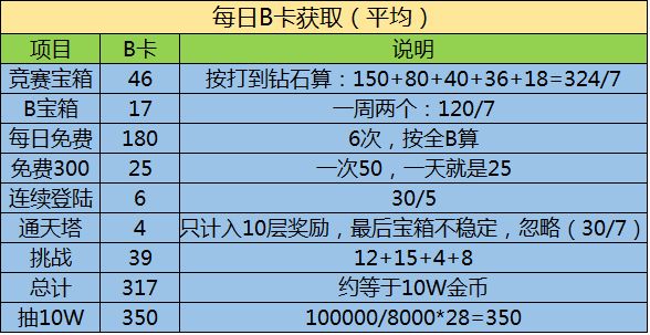 在进入正题前先说说钻石收益的事情,普通玩家后期收益表如下