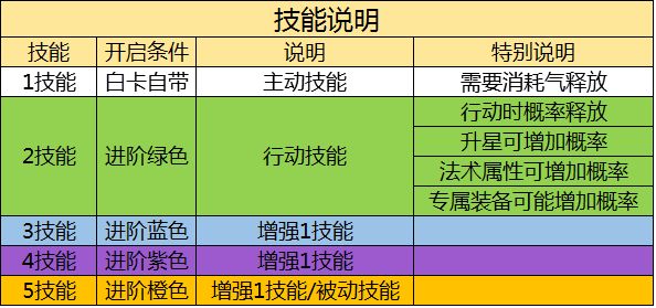 一个英雄有5个技能,随着阶级解锁,具体见下表