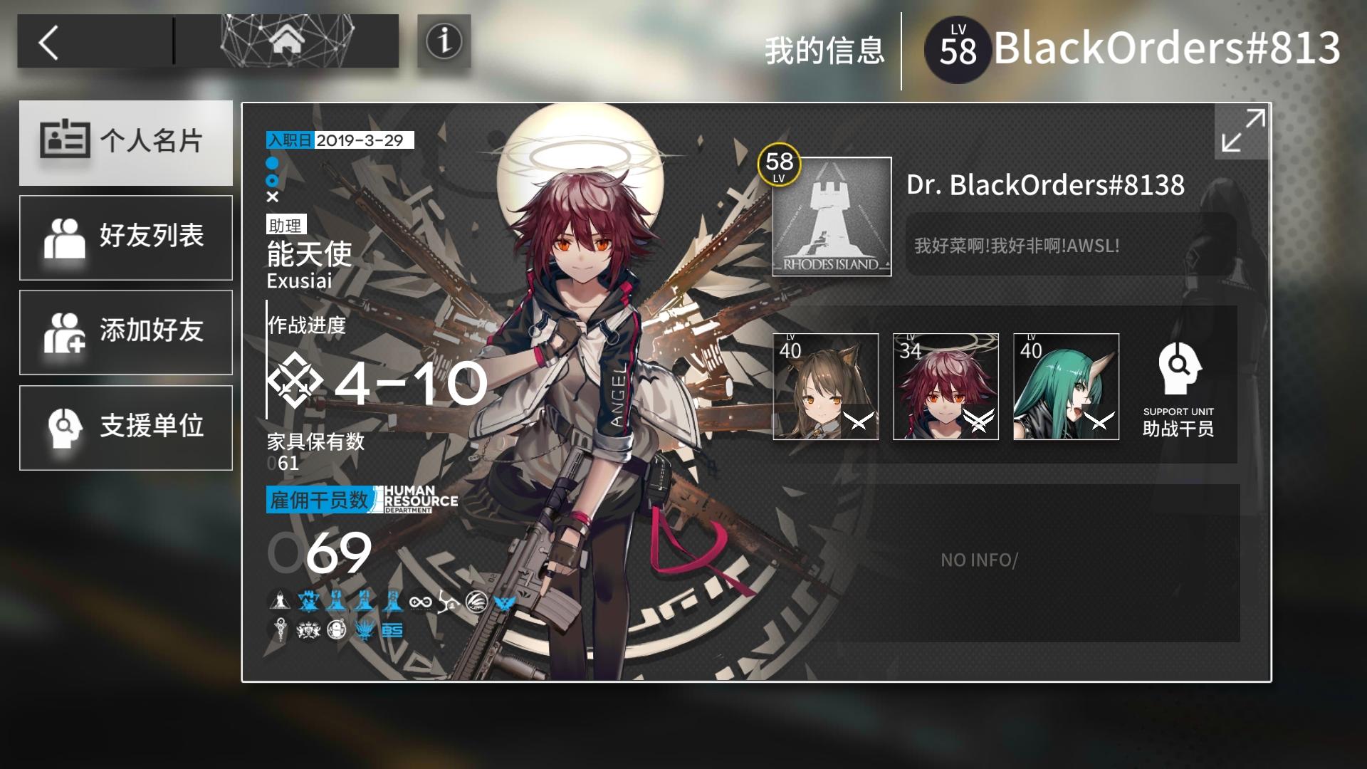 首先是氪金,游戏玩到1-5就开始氪金,看到公测1.6倍(那时还没变成2倍)返还,然后先是所有组合包月卡三个月全氪了,然后抽了开测限定的20抽,只出了星熊(不骗你们,二十抽只有一个6星),然后又转6000的抽,刚刚开始还不太明白哪些好哪些不好,因为高星级的培养问题,我就开始卡着2-2开始继续抽,这一次我直接把所有双倍源石又氪了,这次终于有了个大家都说好用的能天使和天火。就这样又到了2-8和周材料本,发现我缺高星奶(此时我还在用末药和调香),于是开始了氪大单(5个648)于是我的队伍迎来了两个五星奶(华法林,赫末),直到前天又氪了两次648才真正迎来主力级单奶闪灵,最后无奈只能把调香(群奶)精1升级。(真实抽卡经历直到到现在我才确认,不只是我非更是这个卡池坑,BGO卡池我都没这么难受过………)