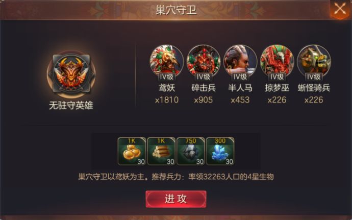 巢穴内存在怪物 需要玩家派兵消灭获取奖励