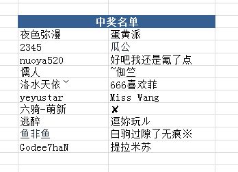 公布一下本期中奖名单: