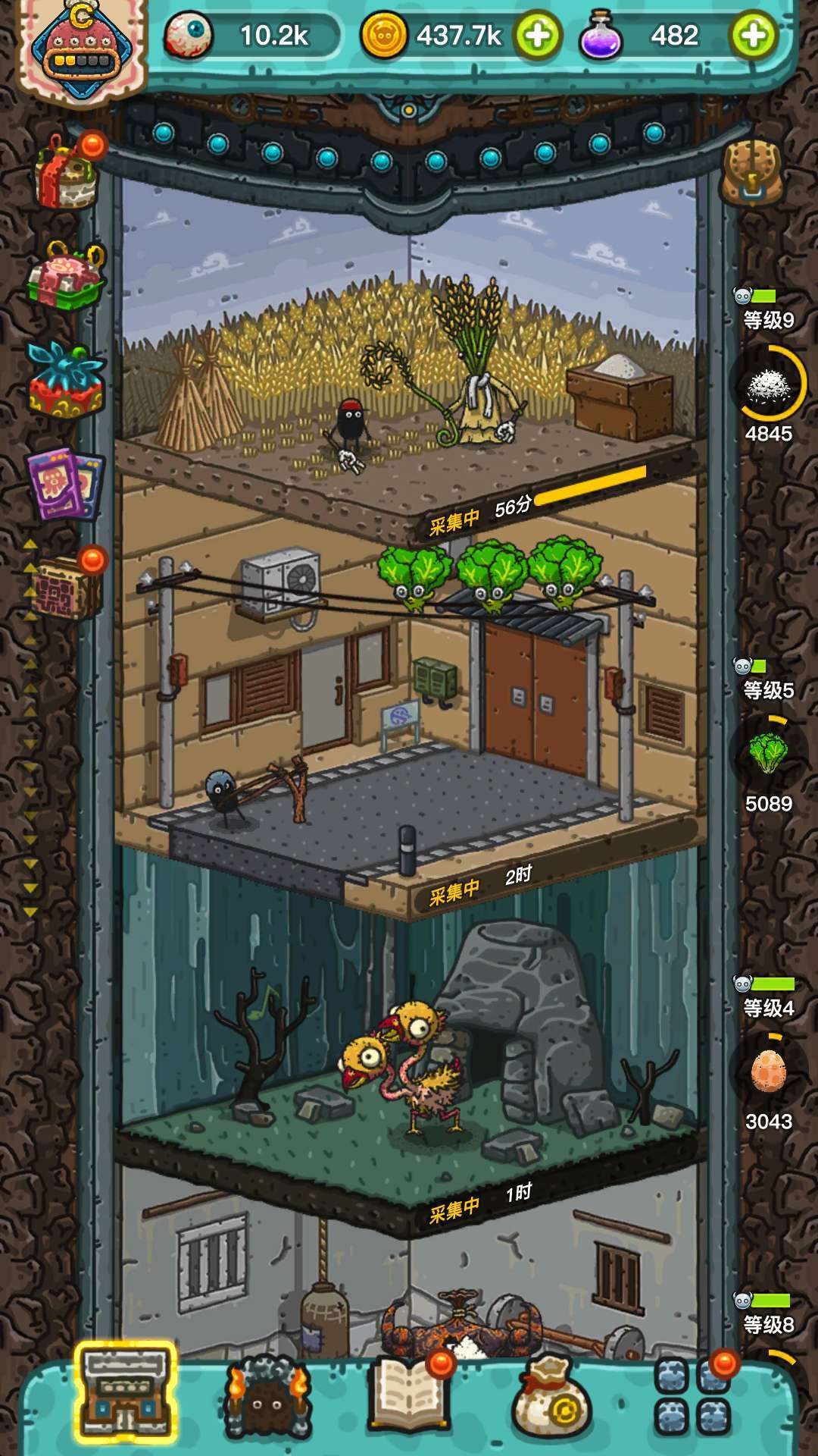 玩家在开始选择一个养殖场开始采集以后,会在一个固定的时间内进行持续性收益,采集时间结束以后,需要玩家上线重新开始下个时间段的采集。而采集时间由养殖场的等级决定,随着养殖场等级提高,采集时间会不断增加。由于游戏中的养殖场数量多达几十种,后期还在不断开放新的养殖场,导致玩家很难将所有养殖场控制在同一个等级。整个采集时间变得混杂无序,玩家管理起来需要耗费大量的精力和时间。当然,以上情况只是对于上线时间较多的玩家来说的,对于一天上线两三次的佛系玩家,每次上线只要用胶囊一键开启生产就可以了。