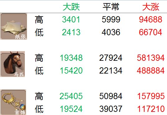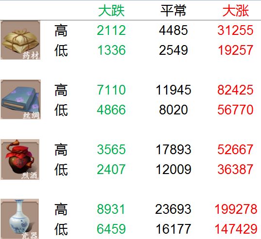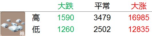 烈酒算是里面涨跌触发比较高的,而且烈酒是为数不多大跌价格和平时价格差额较大的货物,可以特别注意;